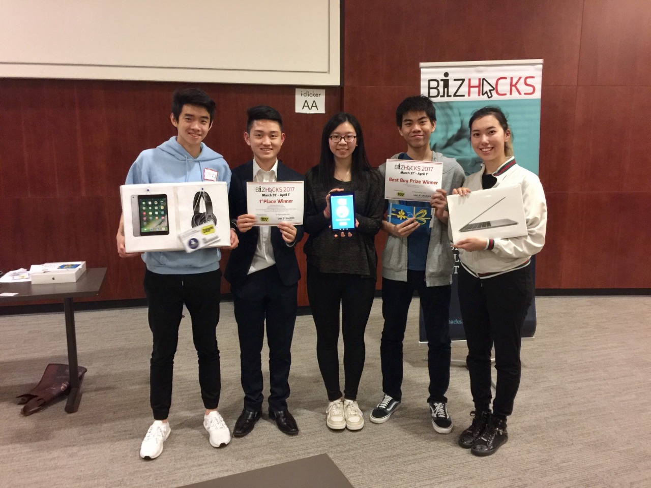 Towards the end of my first year my friends, Steven, Ethan, Tracy, Barry, and I participated in a hackathon, which is a 24-hour competition where we come up with a product idea and develop a semi-working prototype based on the competition themes. We came in first place out of 40 teams, and our product used NFC technology where customers could tap their phone on a pricetag in stores to find customer support and product info, without the need to download an app. We were super surprised with the outcome and could not be thankful enough for the amazing opportunities that came afterwards to interact with industry professionals.